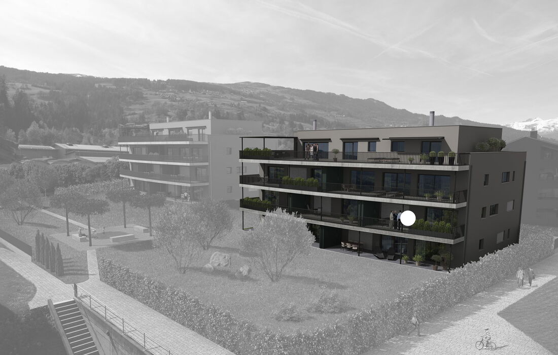 Im Aussenbereich ist eine idyllische Gartenanlage geplant. Auch verfügt die Liegenschaft über eine grosszügige Tiefgarage, genügend Aussen- sowie Besucherparkplätze. Die Wohnung wurde nach den Richtlinien des hindernisfreien Bauens geplant und kann so bis ins hohe Alter ideal genutzt werden.